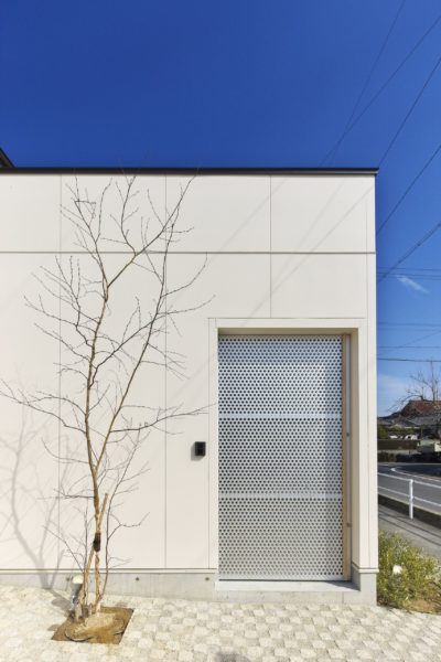 愛北の家のポーチの門扉はボンド鋼板製。