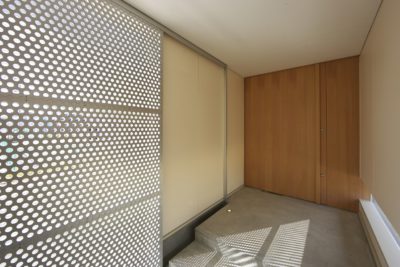 ポーチには陽の差し込む時間や角度で門扉の影が移り変わります。